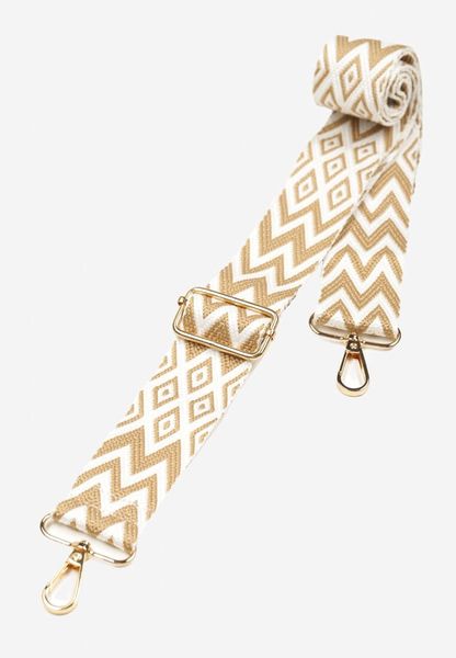 Beżowy Pasek do Torebki w Geometryczny Wzór Sarinell