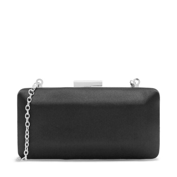 Czarna Wieczorowa Torebka z Rączką Wykończona Cyrkoniami i Łańcuszkiem Fenagia