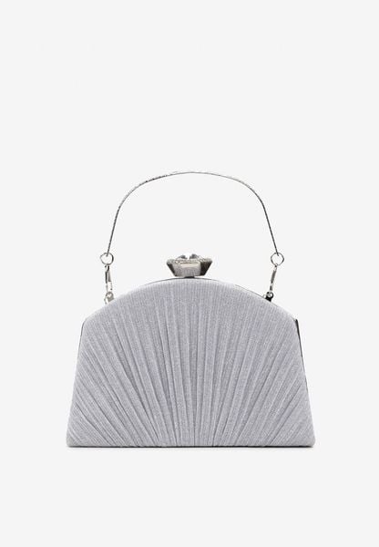Elegancka torebka wieczorowa w stylu retro z kryształkowym zatrzaskiem, dodatkowo ozdobiona brokatem i marszczeniem. Do torebki dołączony łańcuszek.