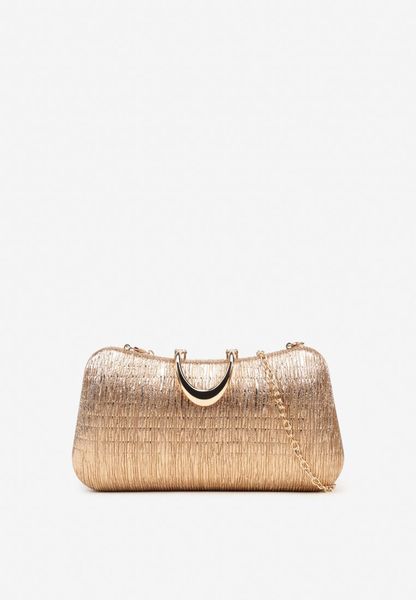 Złota Torebka Koktajlowa z Łańcuszkiem i Ozdobnym Zapięciem Telffira