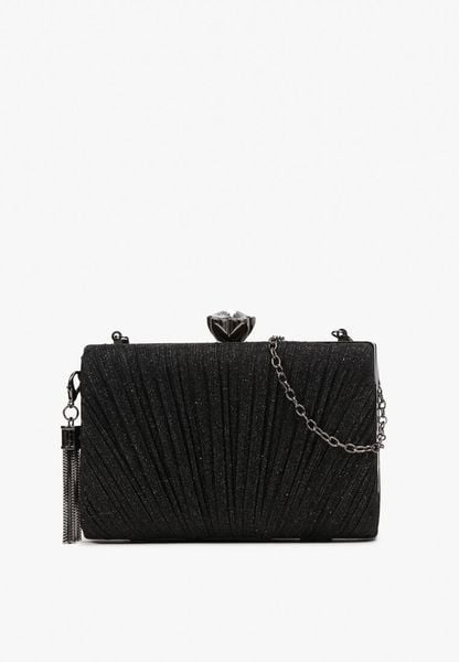 Czarna Brokatowa Torebka z Łańcuszkiem i Ozdobnym Zapięciem Junikordia