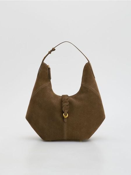 Torebka o formie hobo, wykonana z naturalnego zamszu.