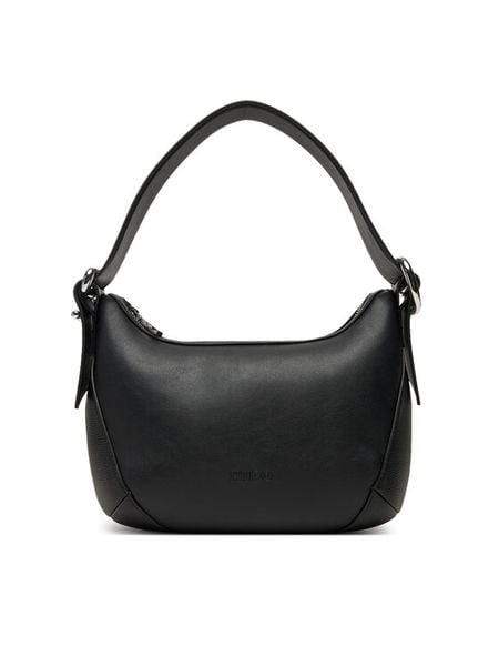 Czarna Torebka z Imitacji Skóry z Suwakiem i Regulowanym Paskiem Buzetta