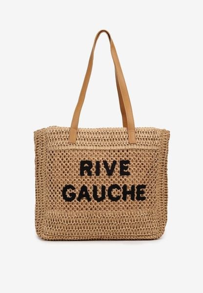 Beżowa Pleciona Torebka Boho z Naszytym Napisem Jusbia