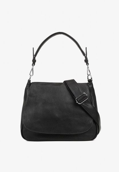 Czarna Torebka z Klapą w Stylu Listonoszki z Paskiem i Rączką Malurelle