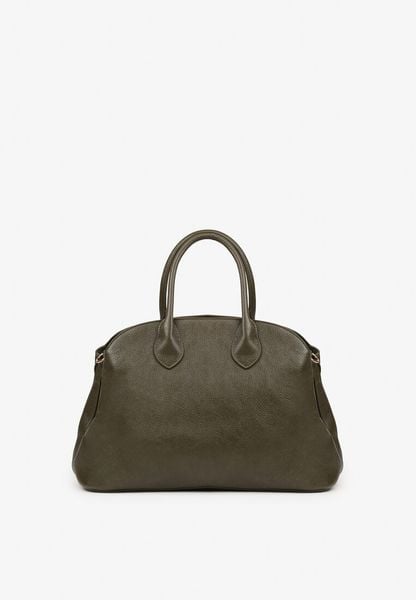 Ciemnozielona Torebka Shopper z Dwoma Rączkami Ozdobiona Paskiem z Klamrą Remisse
