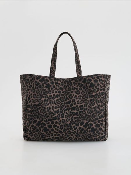 Torebka typu shopper, wykonana z materiału.