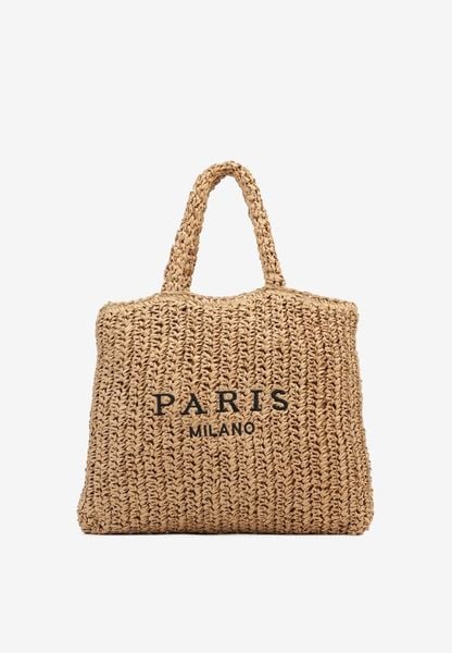 Ciemnobeżowa Torebka Typu Shopper Ozdobiona Plecionką Zenauri
