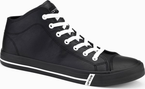 Wysokie męskie trampki z matową fakturą i wytłaczanym logo czarne V1 OM-FOTH-0185 43