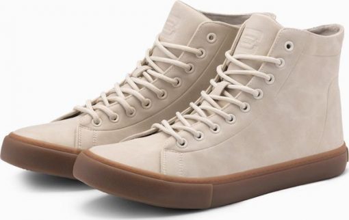 Buty męskie trampki za kostkę z gumową podeszwą kremowe V1 OM-FOTH-0187 40