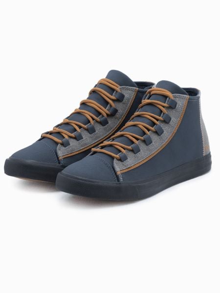 Męskie buty typu trampek Wysoka cholewka Zapinane na metalowy zamek z boku Wstawki z zamszowej tkaniny w kontrastujących kolorach Wierzch: materiał włókienniczy Podszewka z wyściółką: materiał włókienniczy Podeszwa: guma Kolor: granatowy