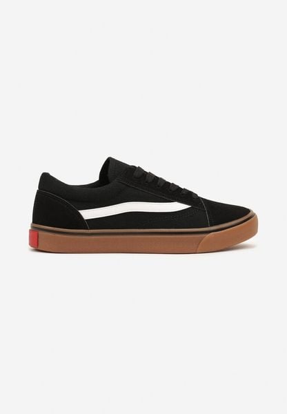 Czarno-Białe Tenisówki z Ozdobną Naszywką z Boku i Klasycznym Sznurowaniem Noobicia