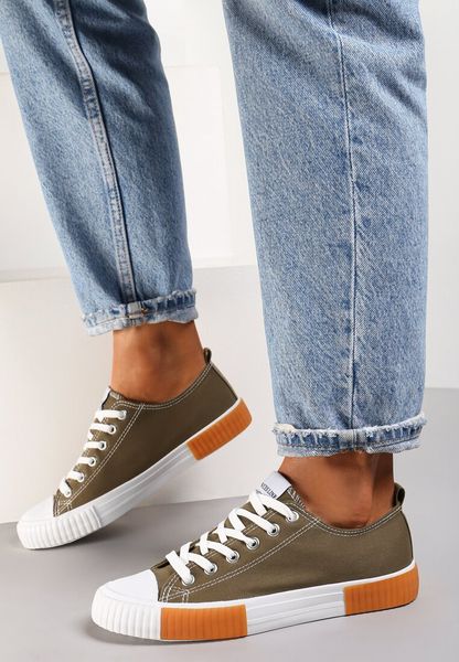 Zielone Klasyczne Sznurowane Trampki przed Kostkę na Grubej Podeszwie Artivea