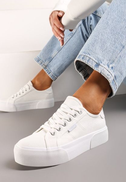 Białe Trampki Klasyczne na Niskiej Platformie przed Kostkę Adorlice