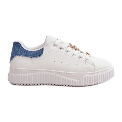 Niskie Trampki Z Eko Skóry Z Przypinkami Biało-Niebieskie Cillione białe