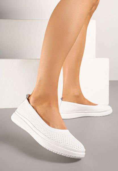 Białe Skórzane Tenisówki na Płaskiej Podeszwie ze Skórzaną Wkładką i Perforacją Ivelili
