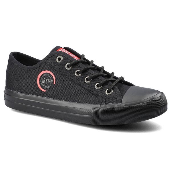 Trampki damskie Big Star, z materiałową cholewką gumowym noskiem wiązaniem na oczka i elastyczną podeszw, czarne, HH274121