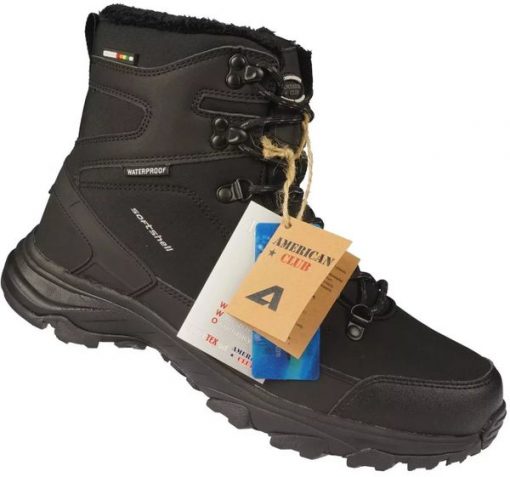 Buty trekkingowe męskie wodoodporne ocieplane czarne American Club