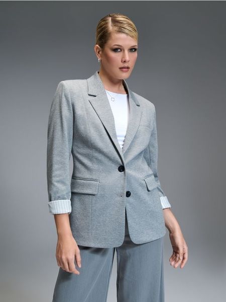 Sinsay – Żakiet – szary – krój slim fit,otwarte klapy,zapięcie jednorzędowe na guziki,2 kieszenie z klapami,podwijane mankiety,rozcięcie z tyłu,melanżowa dzianina