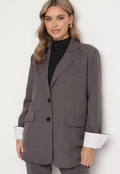 Ciemnoszara Marynarka z Usztywnionymi Ramionami i Wywiniętymi Rękawami Miathalin