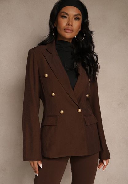Brązowa Dwurzędowa Marynarka z Usztywnioną Linią Ramion Clanira