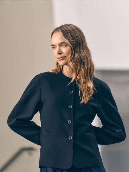 Gładka marynarka o taliowanym fasonie, wykonana z tkaniny z domieszką wiskozy.