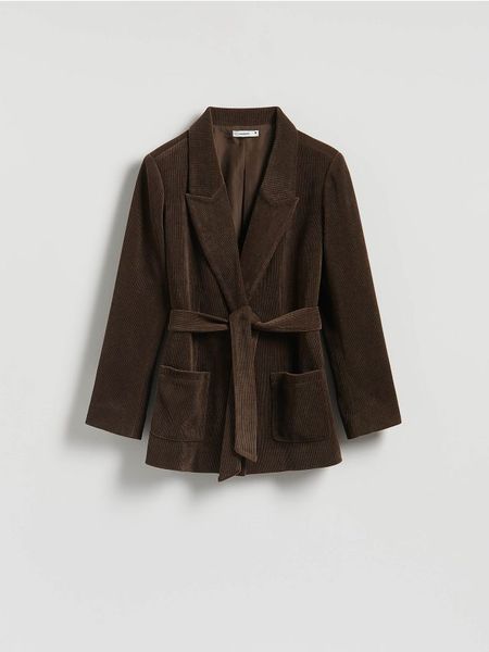 Sztruksowa marynarka z wiązaniem – ciemnobrązowy
